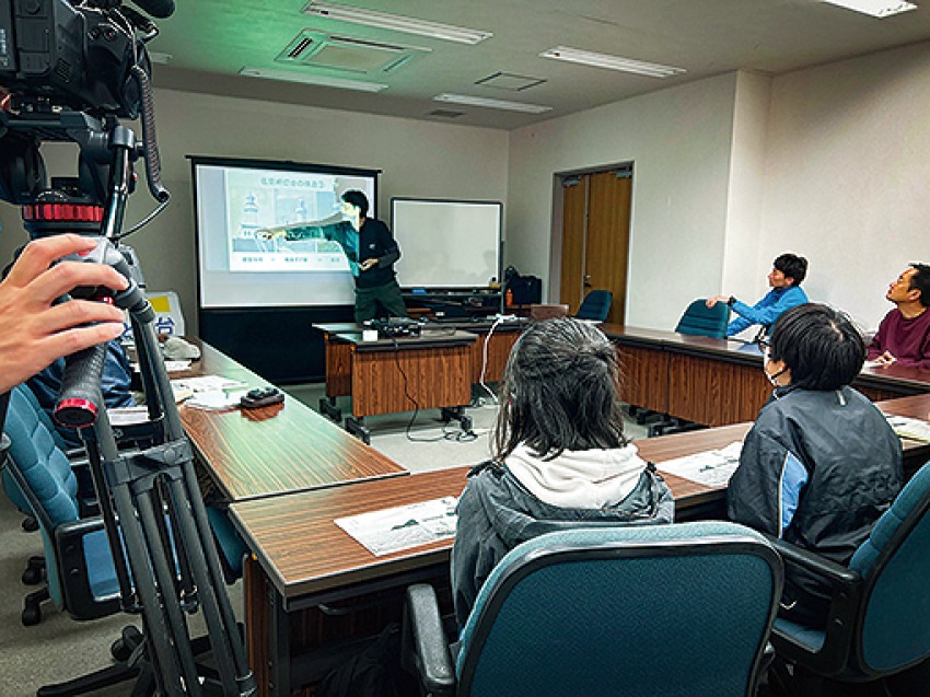 「佐田岬半島ミュージアム」の髙嶋館長が佐田岬灯台の内部へご案内。