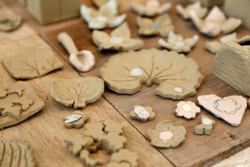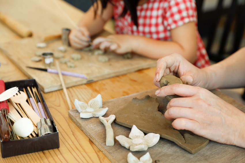 和文化を次世代へつなぐ活動を続ける「岬藍」の柏木ご夫妻による新しい体験プログラム。ろくろを使わず、自分の手で土をこねて形づくる“手びねり陶芸”は、初めての方やお子さまでも気軽に楽しめます。おすすめは、伊方町の花・ツワブキの葉を型にしたお皿や箸置きづくり。